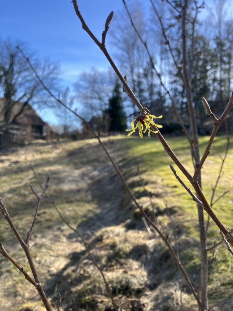 En vända genom trädgården blev det idag. Trollhasseln har inte så många blommor i år men tittar man noga så finns de där.