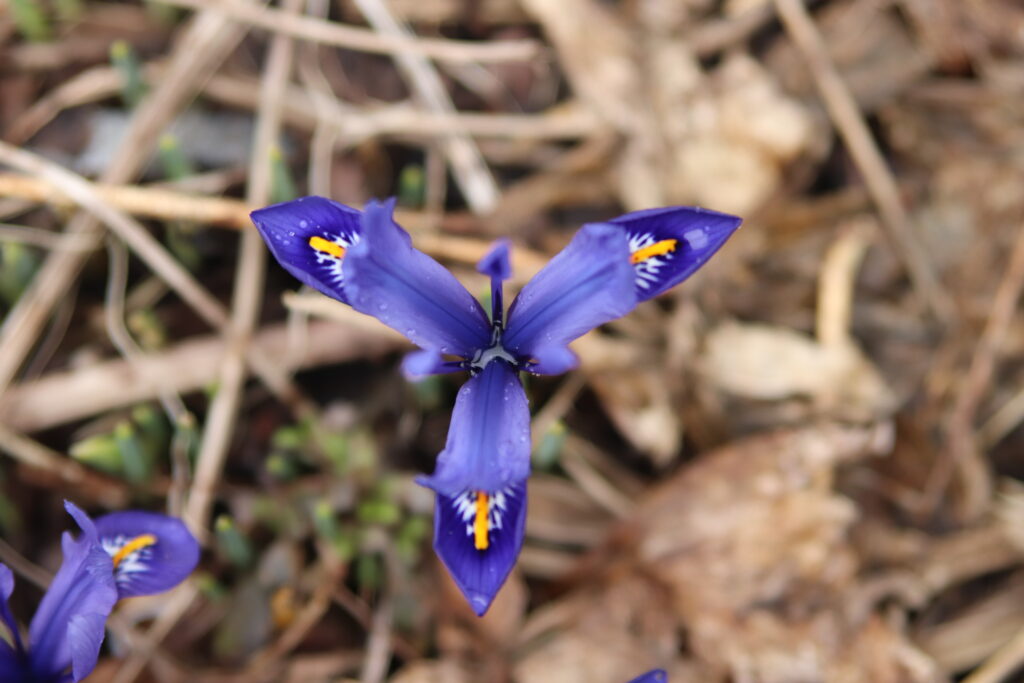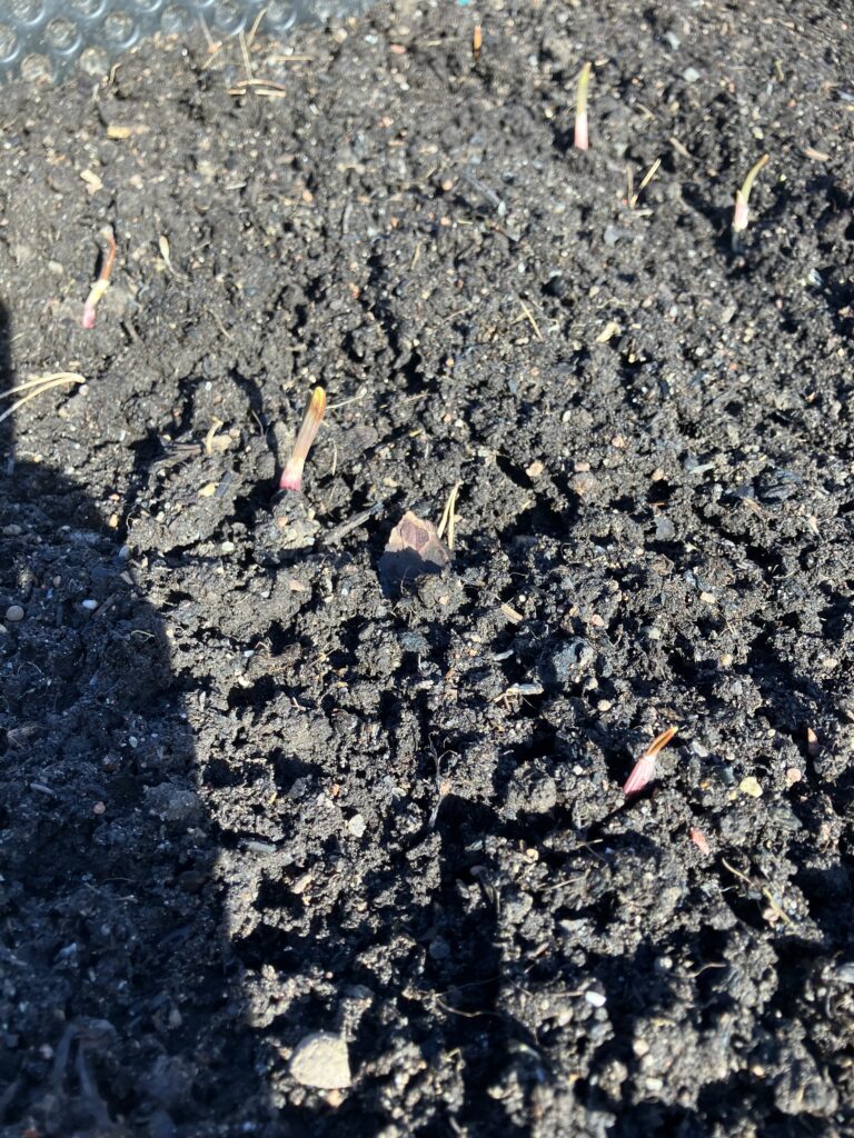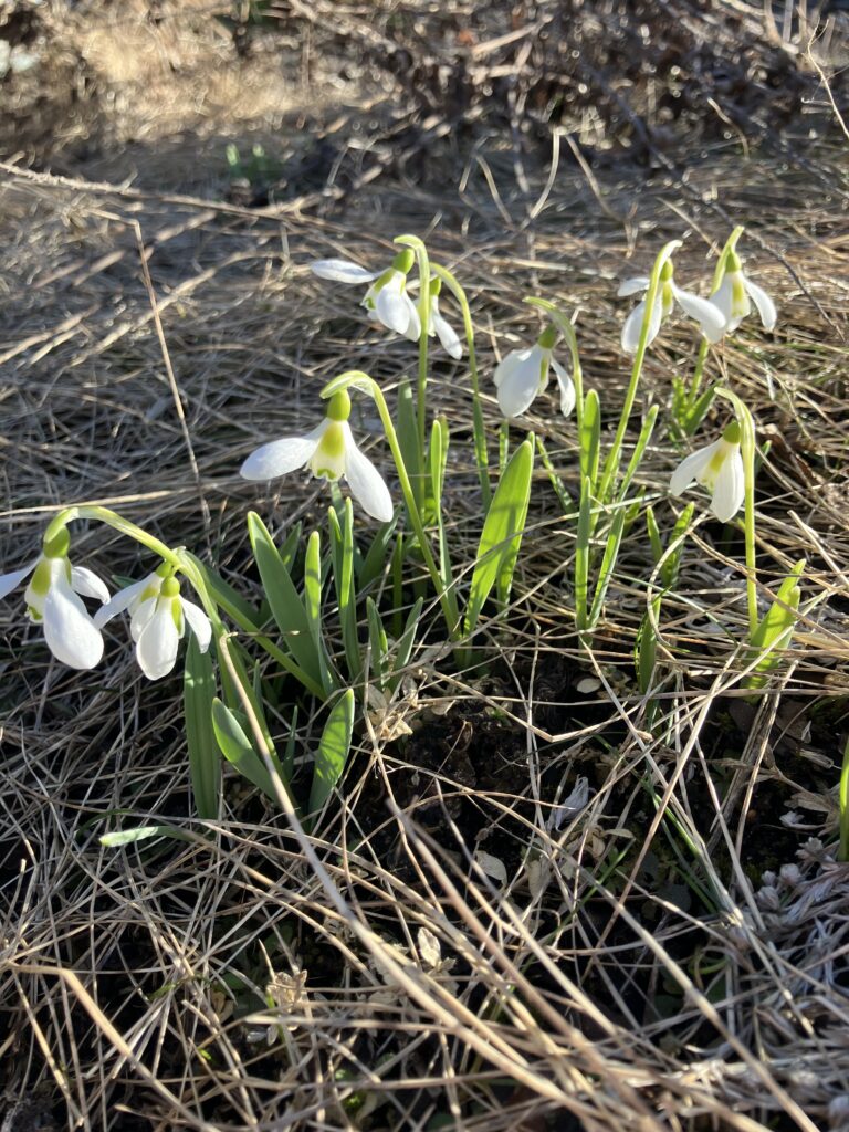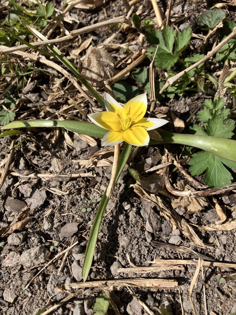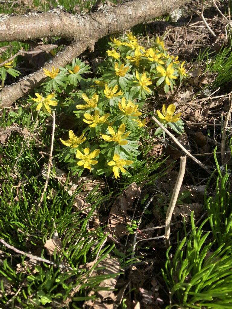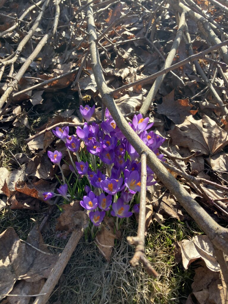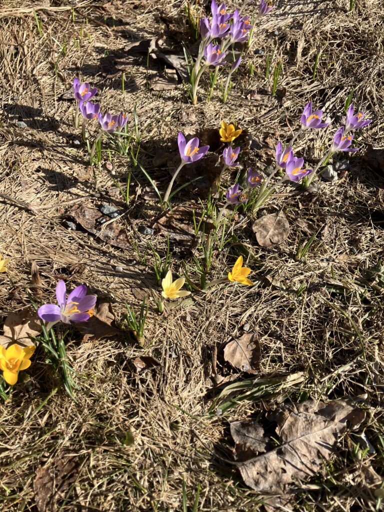 I överkant av nedre buskaget har det frösått sig några krokusar.