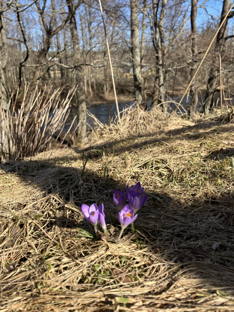 I går såg jag krokusarna vid vedboden utslagna för första gången i år. Då är våren här för mig. Snödroppar och vintergäck har blommat ett tag, men det är först när krokusen slår ut som den där vårglädjen kommer.