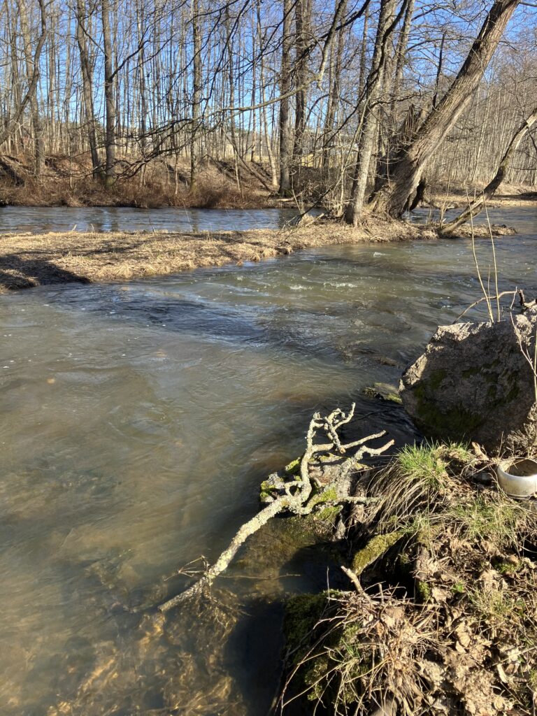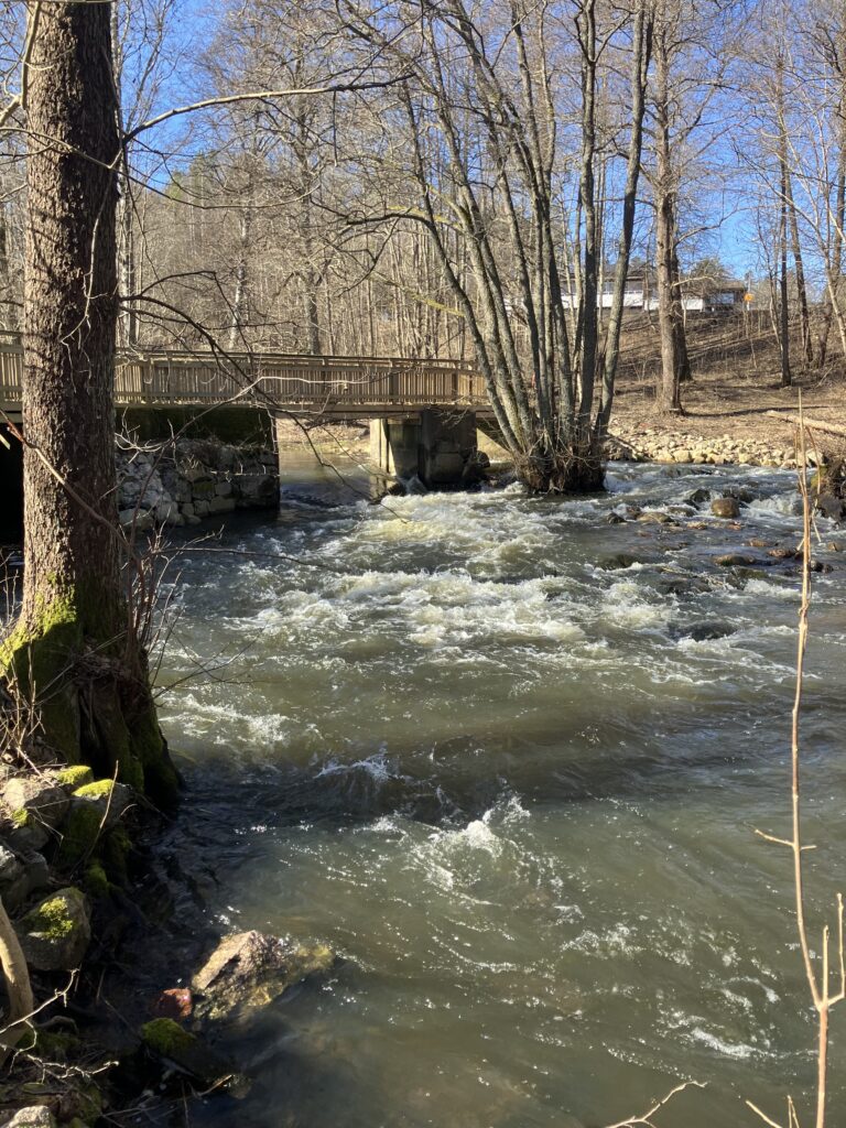 Nere i ån forsar det ordentligt. Vi hade några dagar där vattnet gick upp till stenkanten, men nu har det sjunkit undan lite.