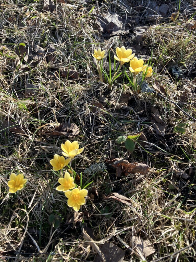 Lite krokusar har slagit ut i övre buskaget och i slänten nedanför.